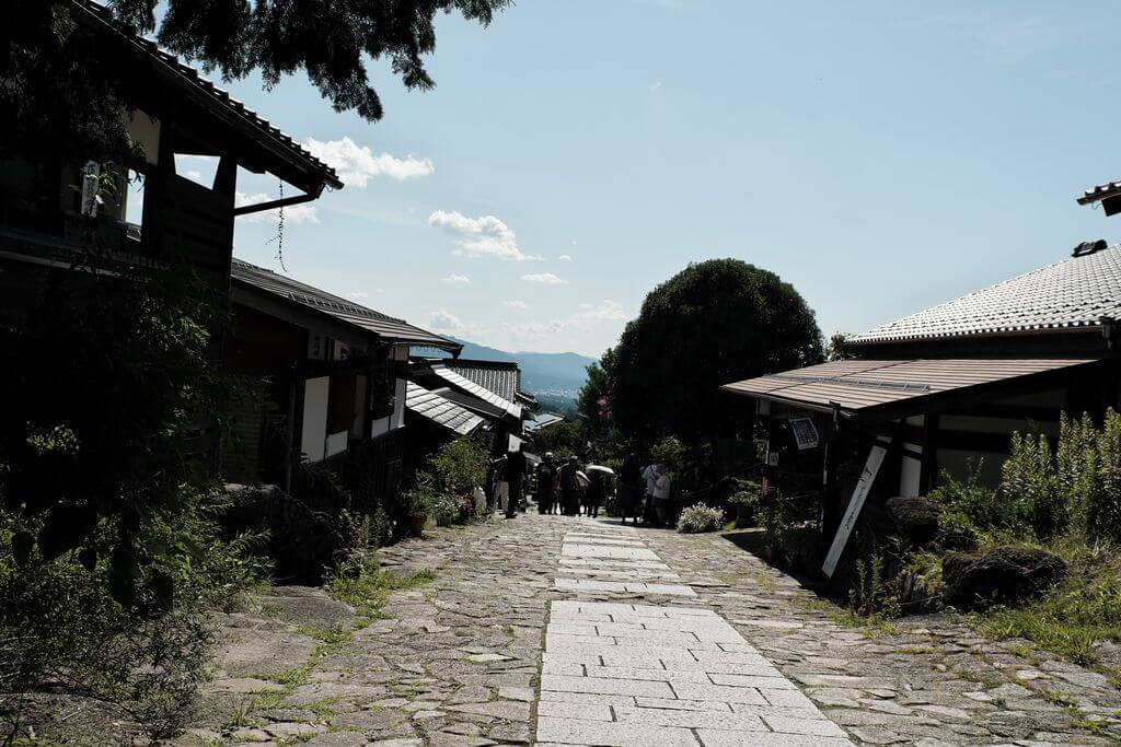 作例ですが、次は馬籠宿の一コマです。影でわかるように太陽が微妙な位置にあります。ファインダーを覗くとややフレア気味なんですね。それを手で遮るとややクリアになりました。
