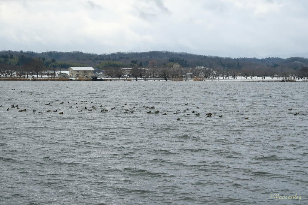 初ショットはこの木場潟で試しました。中望遠でやや圧縮効果が出ているとはいえ、ちょうどよいイメージです。実際には対岸までの距離はやや遠いです。