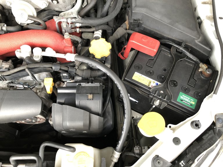 実はバッテリーや二次エアシステム(黄色いエンジンオイルキャップ手前のユニット)を取り外す必要があります。これ以外の方法もありそうですが、ぱっと見てこれでいけそうだと考えた手順です。