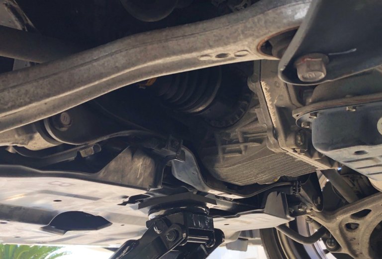 タイヤ交換や整備でやったことがない車のジャッキアップをする際、どこにジャッキをあてるかです。前または後ろを同時に上げるという前提です。車種ごとに違いますので... -