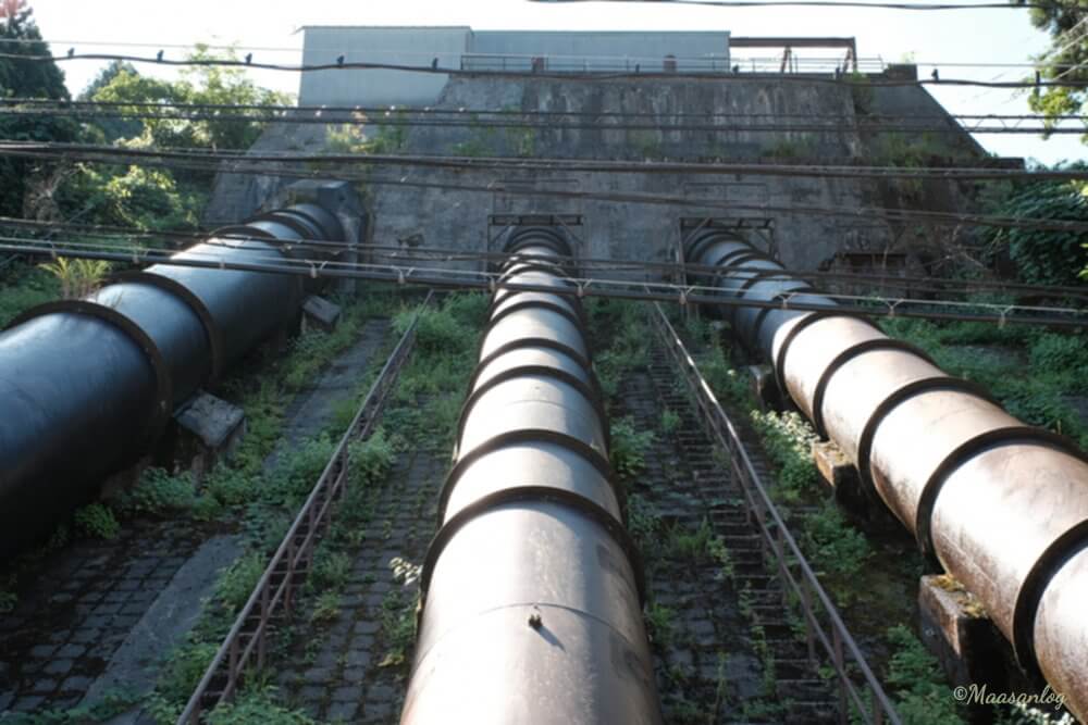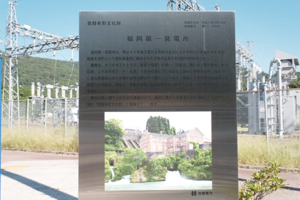 国道157号線を海側から白峰方向へ向かって行くと、扇状地の根元のやや内陸、旧鶴来町を過ぎて山間を通る頃、この発電所の脇を通ることになります。1911年、明治44年に建てられ、現在も稼働しているという歴史ある発電所です。2001年には登録有形文化財に指定されているようです。