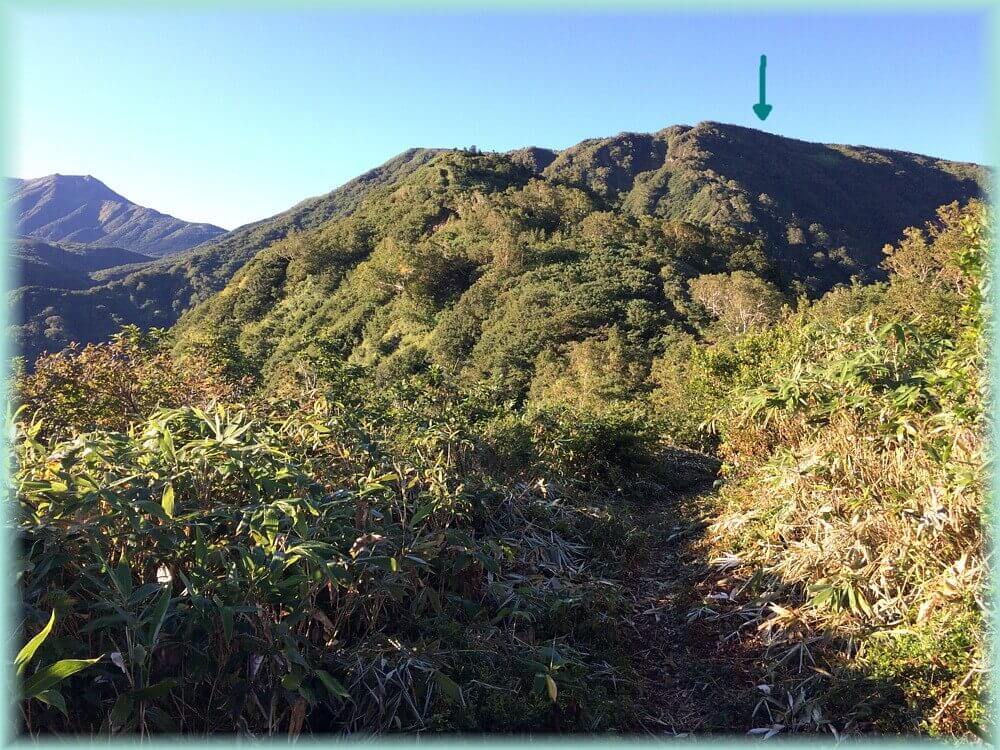 日帰りだと御前ヶ峰まで行くか、ここで昼食をとるのですが、5分ほど休憩後に出発しています。ここから御前ヶ峰を右手に原っぱを行きます。
