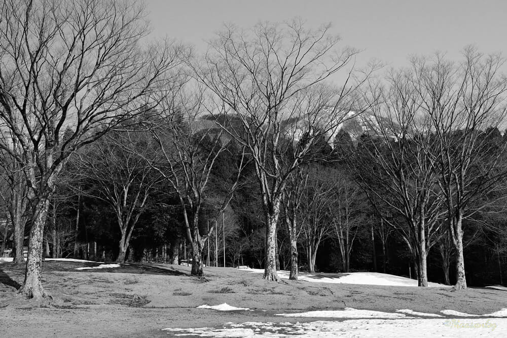うーん、よくわからないけど何となくクリアな感じです。今回は雪や葉っぱの落ちた木々、冬の芝生なので色が乏しいけれど、澄んだ空気感が表現されています。やはり白黒写真、色が無い分雑多感が省かれて静かな雰囲気が良いと思います。